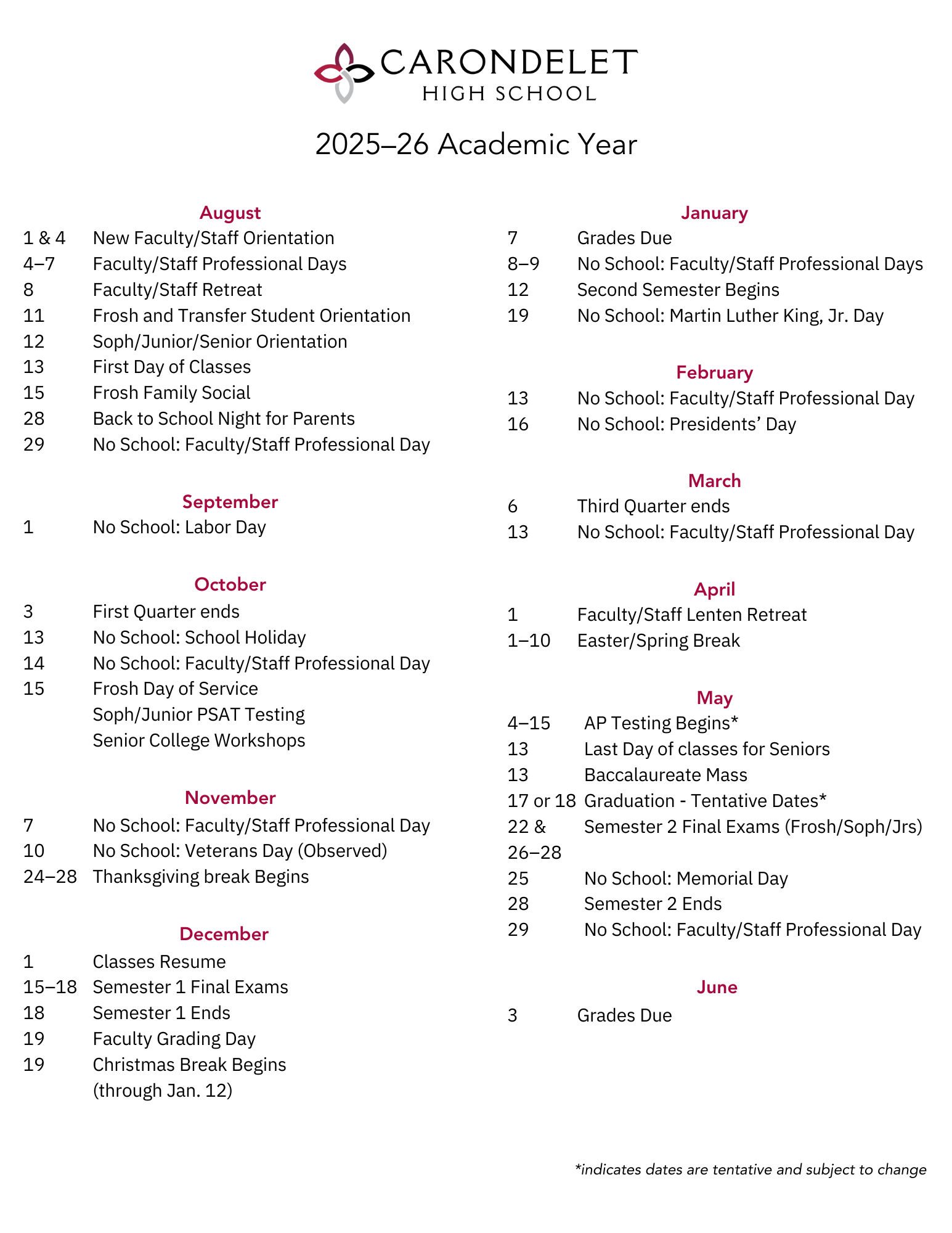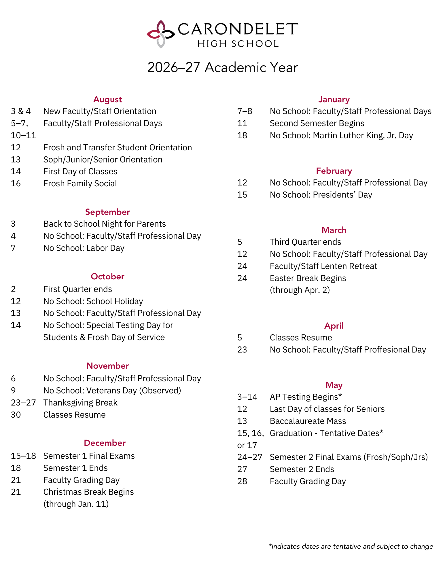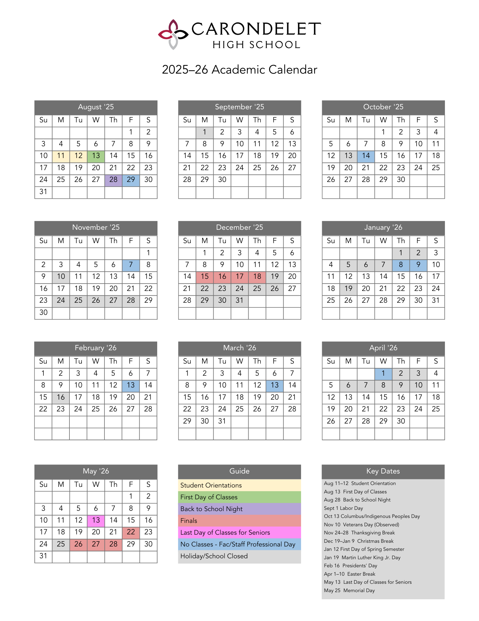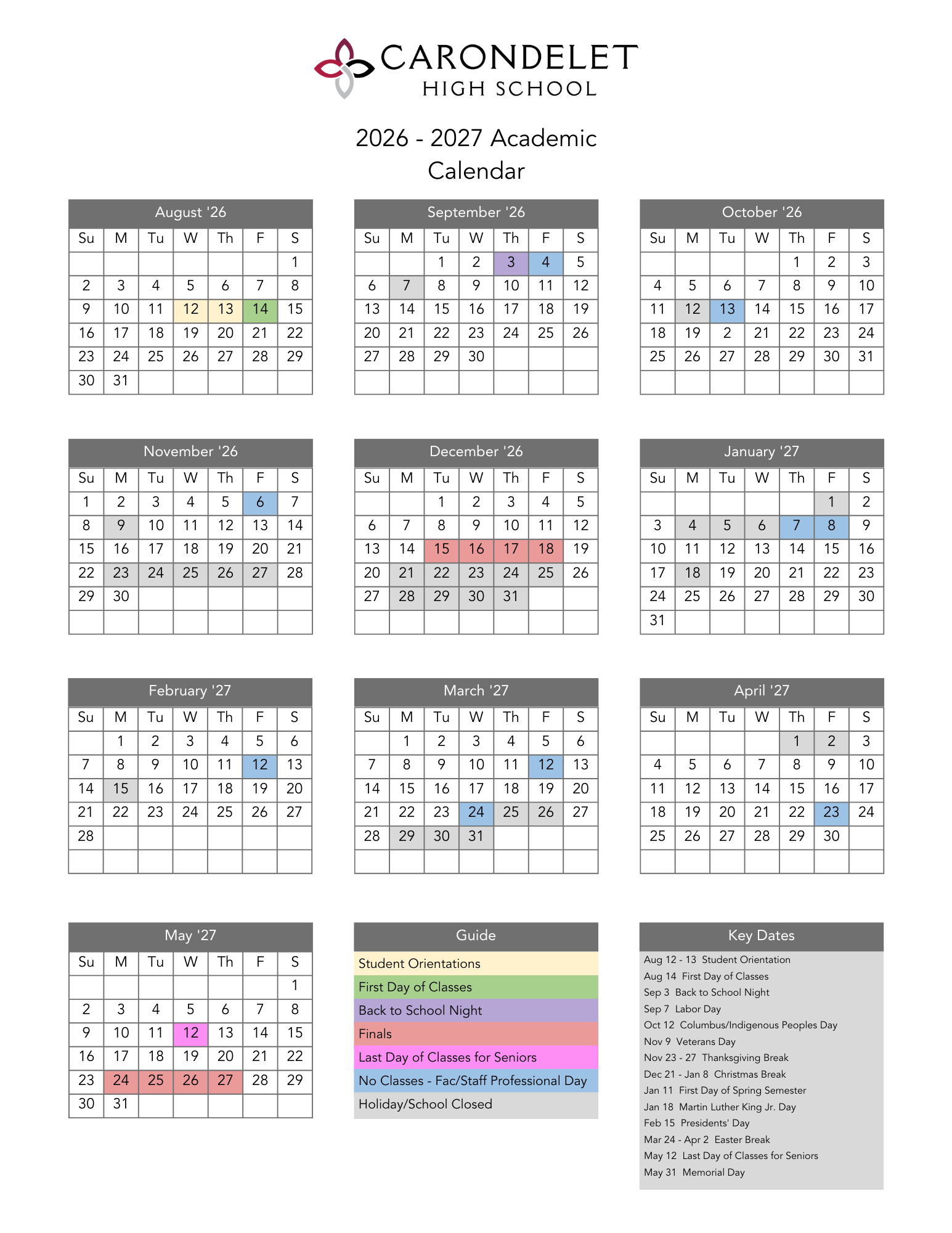 View the key dates for each school year: