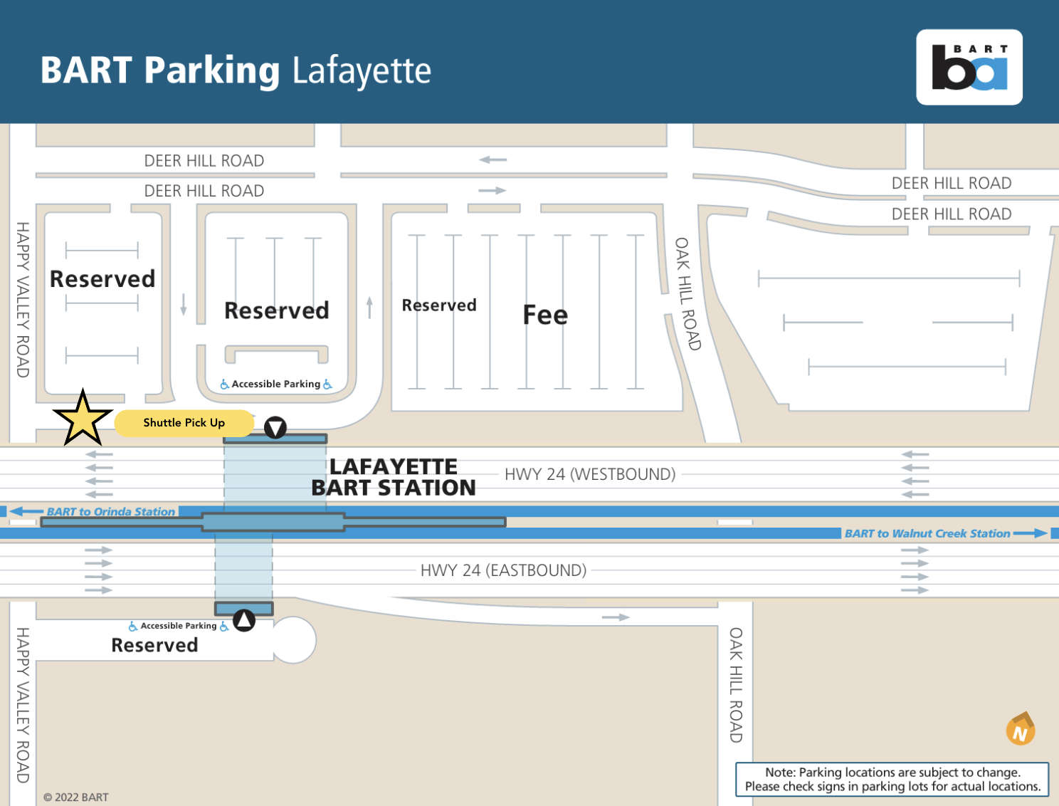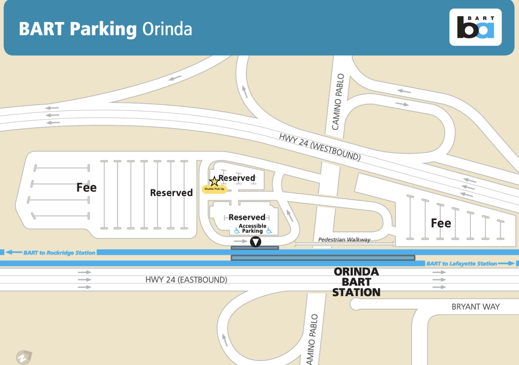 Transportation service begins in the Oakland/Rockridge area with three communal stops near the highway on the way to Winton Drive. Those stops are in Rockridge, Orinda, and Lafayette before arriving at campus. Click on each BART location for details regarding exact pickup location.
